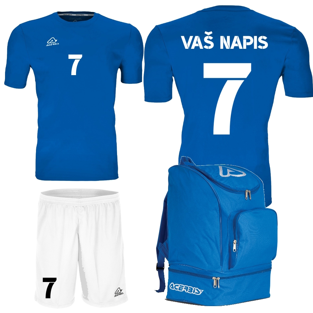 - natisnjeno poljubno ime + številka na dresu ter hlačkah